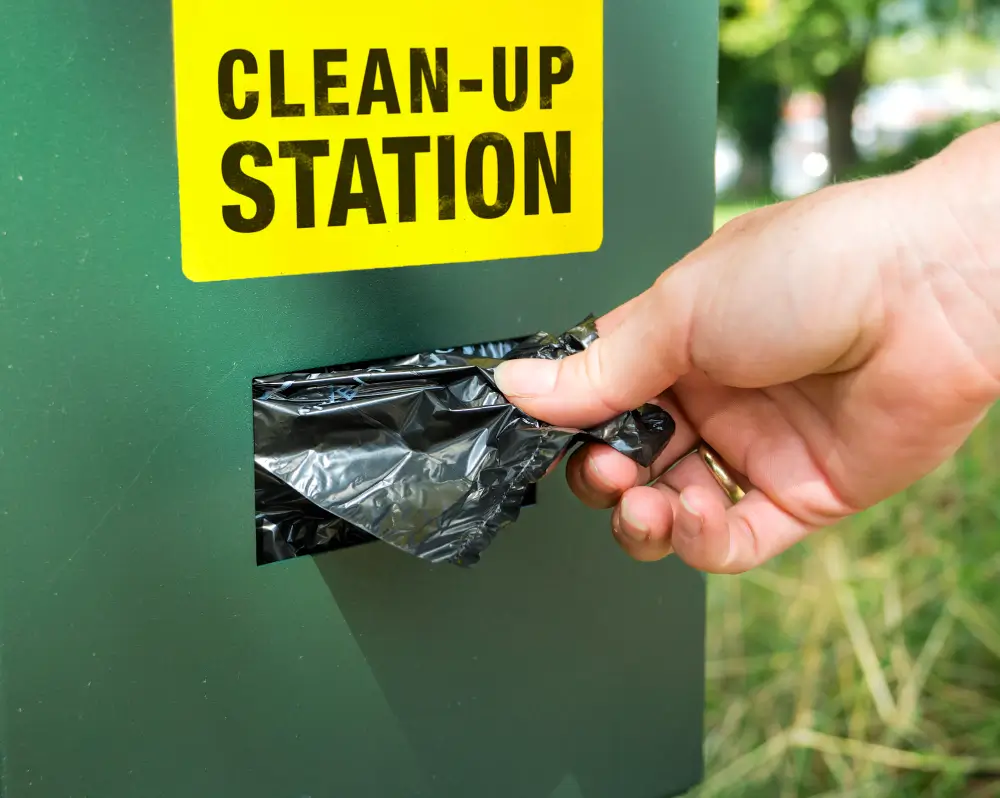 - Remove the disposed dog poop bags from the pet waste station and take them with us